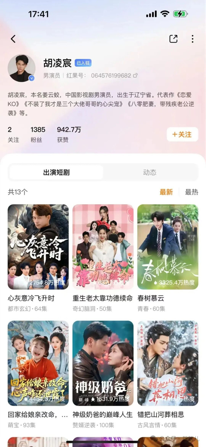 公开资料显示,胡凌宸2006年出生于辽宁省,拍过不少短剧,包括《恋爱KO》、《我装了我才是三个大佬哥哥的心尖宠》、《八零肥妻,待残疾老公逆袭》等,女友柒可昕同样是演员。