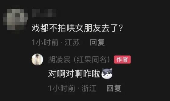 事件发生后,有网友在胡凌宸抖音视频下方留言:戏都不拍哄女朋友去了?胡凌宸回复:对啊对啊咋啦。目前,该回复已删除,其账号已开启防打扰保护功能。